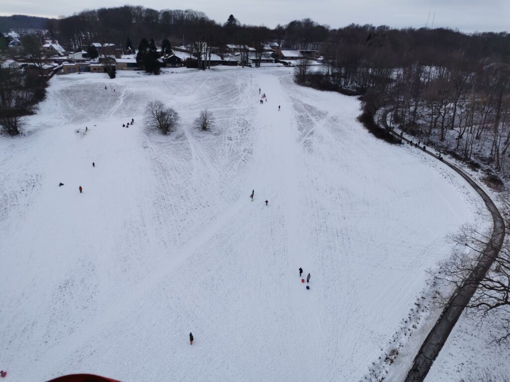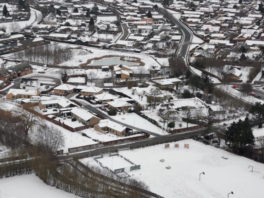 Meget svag vind. Fløj nærmest rundt i byen tilbage forbi startstedet og landede endelig ved Bisgaardsvej