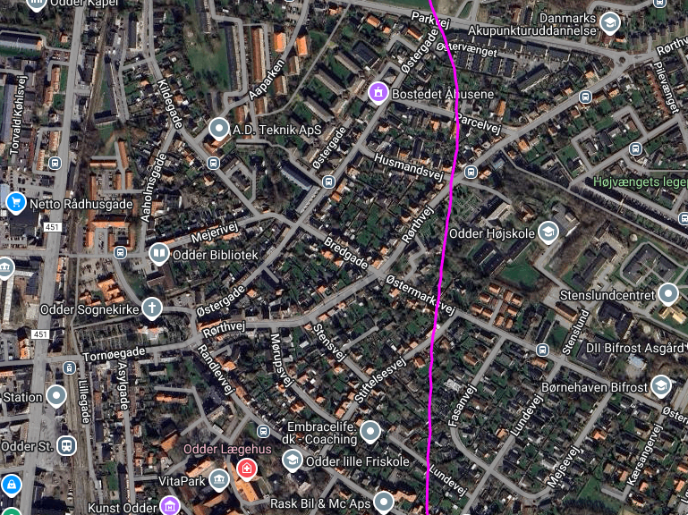 Turen startede på “Cirkuspladsen” i Odder. Se kort herover